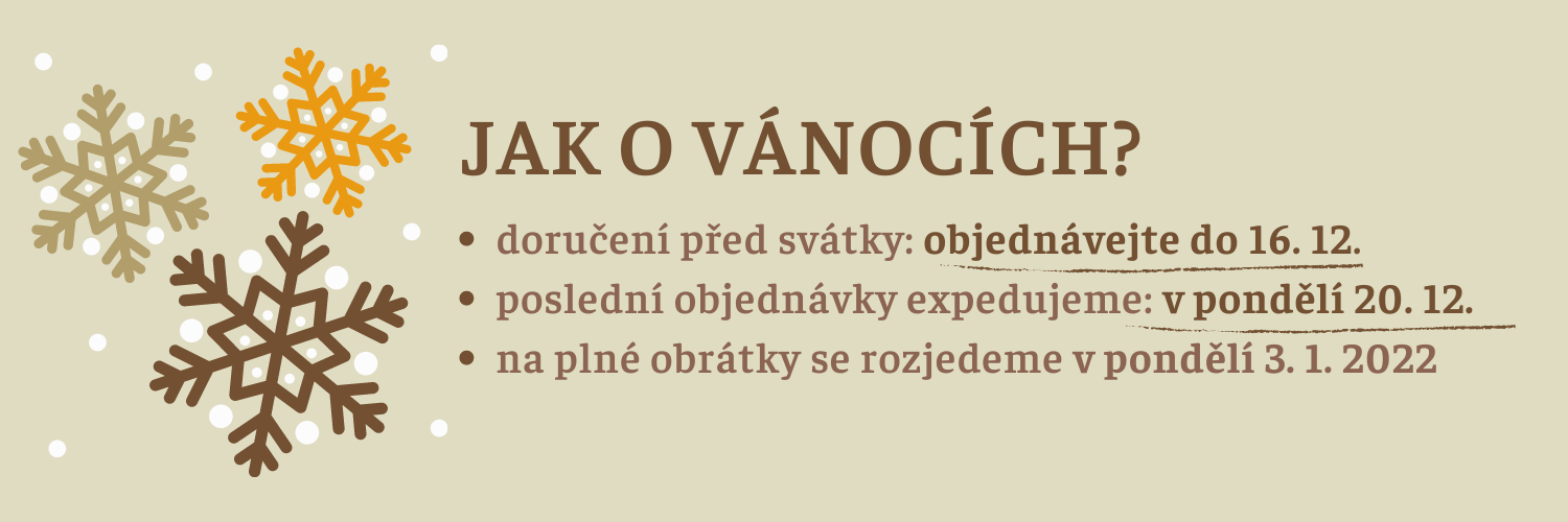 vaše objednávky s datem 16. 12. s nejvyšší pravděpodobností doručíme do Štědrého dne. Bohužel, u objednávek vytvořených po tomto datu pravděpodobně nedojde k doručení do Vánoc, budeme ale expedovat do pondělí 20. prosince. Mezi svátky (27. - 31. 12.) zásilky neexpedujeme. Těšíme se na vás 3. 1. 2022, kdy zahajujeme opět plný provoz.